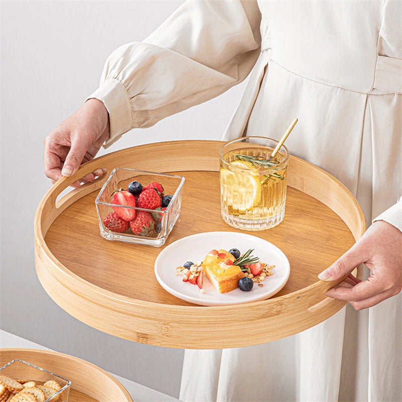 Bandeja Redonda de Bambu – Elegância Natural para Servir e Decorar