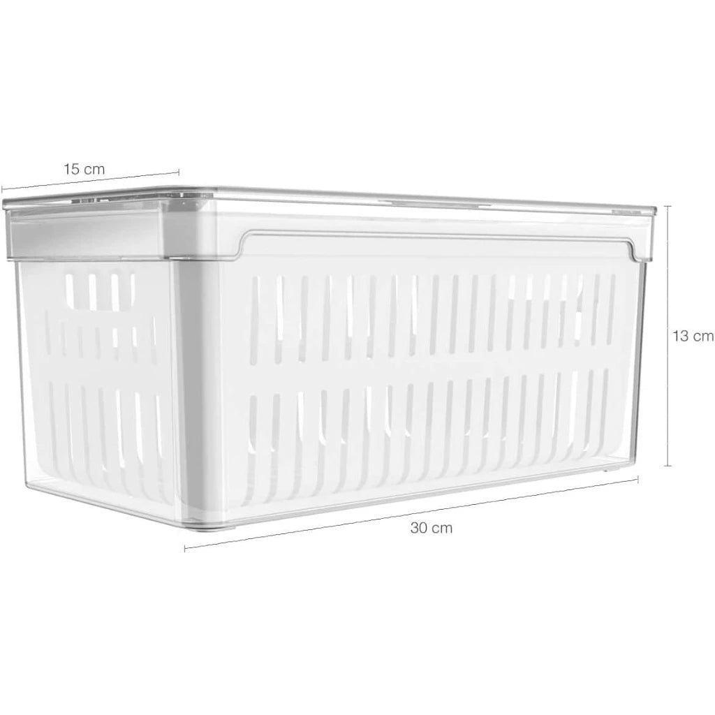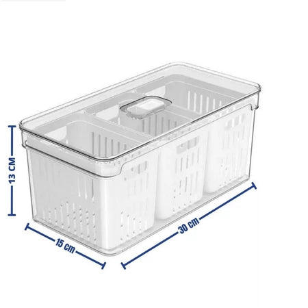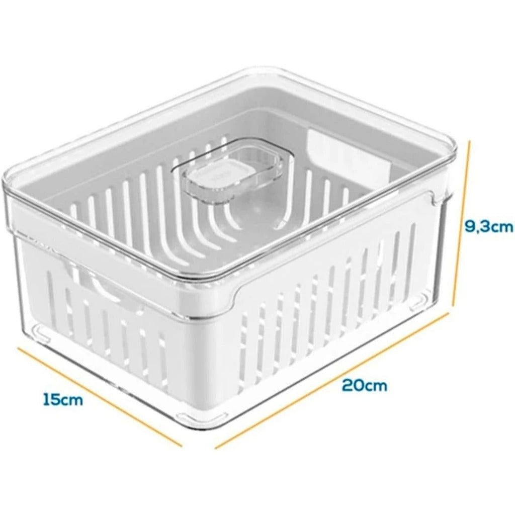 O kit de potes organizadores com escorredor e tampa é perfeito para conservar alimentos frescos por mais tempo, mantendo a geladeira limpa e organizada. Com cesto interno removível, facilita o escoamento da água após a lavagem, evitando o contato direto dos alimentos com a umidade