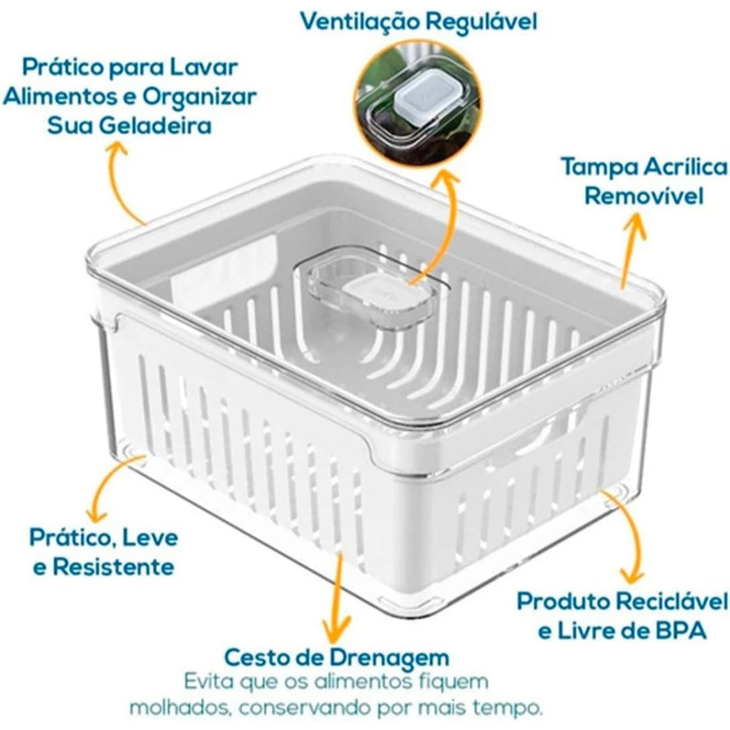 ✔ Cesto de drenagem: mantém os alimentos secos e frescos por mais tempo