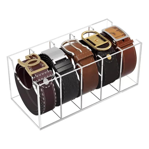 Mantenha seus cintos organizados, visíveis e sempre à mão com este organizador em acrílico com 6 compartimentos. Perfeito para closets, gavetas ou prateleiras, ele traz praticidade no dia a dia e valoriza a apresentação das peças, facilitando a escolha do acessório ideal para cada look.
