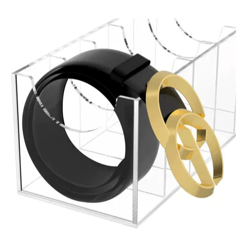Fabricado em acrílico cristal de alta resistência, o organizador possui acabamento moderno e minimalista, combinando com qualquer ambiente. A estrutura é leve, resistente e fácil de limpar, garantindo visibilidade total dos cintos sem precisar abrir ou mexer em caixas
